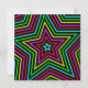 Ein heller Regenbogen von Farben in einem Sternmuster gegen Schwarz.