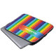 Der Laptop-Ärmel mit seinem hellen Regenbogen ist mit einem Bannerband mit Regenbogengradienten und weißen Heftdetails versehen. Es ist mit einem Namen oder einem beliebigen Text personalisiert, den Sie gewollt haben.