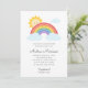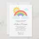 Mit dieser regnerisch-sonnendurchfluteten Einladung laden Freunde und Familie zu Ihrer Baby-Dusche ein.