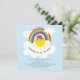 Ein kleiner Sonnenstrahl mit Babydusche mit niedlicher Lächelnheit und leuchtend farbigem Regenbogen für eine Babydusche von Boys. Dreh unsere Einladung nach hinten, um einen gestreiften Regenbogen für eine besondere Touch zu sehen