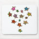 Mousepad ist illustriert mit mehrfarbigen Regenbogenschildkröten, die in Herzform angeordnet sind.