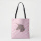Genießen Sie unsere Rosa und Weiß Stripe Tote Tasche mit Regenbogen unicorn Silhouette Design. Ideal für Strand, Yoga-Klasse oder Shopping.
