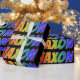 Dieses bunte, lustige, lebendige Verpackungspapier-Design zeichnet sich durch den gemeinsamen Vornamen "JAXON" aus, der ein buntes Regenbogenspektrum wie Farbmuster aufweist. Es hat auch einen schwarzen Hintergrund. Ein lebendiges Verpackungspapier wie dieses könnte eine lustige Art sein, ein Geschenk oder Geschenk zu verpacken, das jemand namens Jaxon gegeben hat. [~Z0000354]