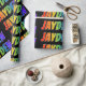 Dieses aufregende, lebendige, farbenfrohe Verpackungspapier-Design zeichnet sich durch den gemeinsamen Vornamen "JAYDEN" aus, der ein farbenprächtiges Regenbogenspektrum wie Farbmuster aufweist. Der Hintergrund ist schwarz. Ein lebendiges Verpackungspapier wie dieses könnte eine lustige Art sein, ein Geschenk zu verpacken, das jemand namens Jayden gegeben hat. [~Z0000354]