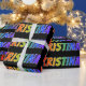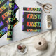 Dieses lebendige, lustige, farbenfrohe Verpackungspapier-Design zeichnet sich durch den gemeinsamen Vornamen "KRISTINA" aus, der ein farbenprächtiges Regenbogenspektrum wie Farbmuster aufweist. Der Hintergrund ist schwarz. Ein spannendes Packpapier wie dieses könnte eine lustige Art sein, ein Geschenk oder Geschenk zu verpacken, das jemandem mit dem Namen Kristina gegeben wird. [~Z0000354]