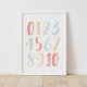 Stellen Sie Ihre Kinder mit diesem handgeschriebenen Aquarellposter ihren Zahlen vor. Dekorieren Sie eine Mauer im Kinderzimmer, im Schlafzimmer oder im Spielzimmer Ihres Kleinen mit diesem Bildungspapier, um das Lernen im Alltag zu fördern.