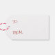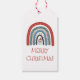 Ein niedlicher Boho Aquarell Regenbogen Weihnachtsgeschenk-Tag für Ihre Packzubehör. Weiße rot-blaue Markierung mit niedlicher fröhlicher Weihnachtstypografie.