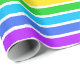 Ein Verpackungspapier, das mit einem gestreiften Muster in hellen Regenbogenfarben und weiß gestaltet wurde.