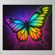 This whimsical poster features vibrant butterfly wings displaying a rainbow gradient from purple to red, glowing against a dark background, symbolizing transformation and hope. Finished as an oil paint art print.