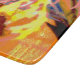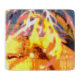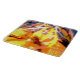 Das abstrakte Kunstwerk auf diesem 6"x7" Schneidebrett entstand aus einem Originalfoto von HomeWare aus Regentropfen auf einer Pflanze aus Korallenpalmen. Das Foto ist in sonnigen tropischen Farbtönen gehalten, hellgelb, rosa, orange, terracotta, blau und weiß.
