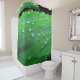 Das Originalwerk von ZoeSPEAK auf diesem Duschvorhang ist ein originales Nahaufnahmen von Regentropfen auf einer Manilla-Palmfront. Die federgrüne Front ist gebogen, was uns einen Blick auf die Wassertropfen aus verschiedenen Winkeln gibt. Oben in der Kurve sehen wir einen Horizont von Regentropfen vor dunklem Hintergrund. Während sich die Frondkurve dreht, haben die Tröpfchen helle Highlights und werden im Schatten gegenüber der Unterseite kleiner.