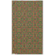 Lebhafte und komplexe Muster bilden ein kaleidoskopisches Design mit symmetrischen Arrangements und lebhaften Farben. Formen spielen mit Grüntönen, Rot und Purpur zusammen und erzeugen einen lebendigen und dynamischen visuellen Effekt.