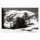 Ein Schwarz-Weiß-Foto des Berges Rainier mit Schnee bedeckt. Einige Steine sind freigelegt. Das Eis und der Schnee des Vulkans schmelzen weg. Einige Bäume durchbrechen die raue Landschaft. Image Copyright ©2023 Kimberly J Tilley. zazzle.com/store/developingnature