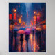 Rainy City Night mit Umbrellas im Impressionismus Poster