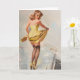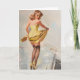 Große Retro-Button-Up-Kunst von Beautiful Pinup Girl in einem regnerischen Tag.