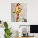Große Retro-Button-Up-Kunst von Beautiful Pinup Girl in einem regnerischen Tag.