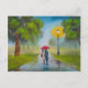CARTE POSTALE JOUR DE PLUIE COUPLE UMBRELLA PEINTURE