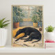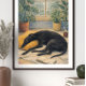 "black dog resting artwork"