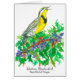 Carte de voeux avec le chant de l'Occidental Meadowlark perché sur un arbre de l'Oregon, inspiré par l'Oiseau d'Etat et la Fleur d'Etat de l'Oregon dessiné avec un stylo noir et de l'encre et peint avec de l'aquarelle.