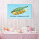 Das grüne Krokodil fliegt mit seiner schnellen goldenen Rakete hoch in den Himmel.