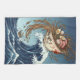 Diese kühne Illustration verbindet traditionelle japanische Wellenaesthetik mit moderner Food-Pop-Art. Eine wilde, animierte Ramen-Schüssel bricht durch eine tosende Meereswelle, schleudert Nudeln wie wildes Haar umher, während die Toppings in dramatischer Bewegung nach außen explodieren. Die Eier, das Fleisch und die Garnituren werden zu ausdrucksstarken Elementen, die dem Ramen eine mythische, fast kriegerische Persönlichkeit verleihen.