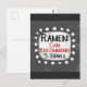 Ein lustiges typografisches Design, das "Ramen: Kann empfehlen, 5 Sterne" sagt. Es ist schwarz und rot auf einem weißen Rechteck mit funky, spielerisch weißen Punkten, die ihn umgeben, alles auf einem grauen Hintergrund.