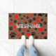 Zeichnungen von Hundepuppprints und roten Herzen in vielen Größen. Benutzerdefinierte Türen mit einer Begrüßungsnachricht. Braune Hintergrundversion. Geschenke Idee für Menschen aller Altersgruppen, die Liebe Hunde.