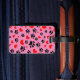 Zeichnungen von Hundepuppprints und roten Herzen in vielen Größen. Rosa Hintergrund. Benutzerdefinierte Gepäckanhänger. Geschenke Idee für Menschen aller Altersgruppen, die Liebe Hunde.
