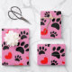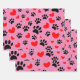Random Cartoon Dog Paw Prints and Red Hearts Geschenkpapier Set