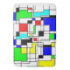 Maßgeschneiderte Badmatten. Geometrische Formen, die durch das Werk von Piet Mondrian inspiriert werden. Unregelmäßige Linien, die Quadrate und Rechtecke bilden. Original dekorative digitale Kunst.