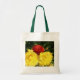 Natürliche und Jäger grün 100% Baumwolle wird Tote-Tasche mit einem Bild von einer Aquarellmalerei von schönen gelben und roten Ranunculus.