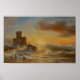 Wellen schlagen gegen den alten Castello sul Mare, wo ein Schiffswrack auf den Felsen zerschmettert ist. Dunkle Wolken rollen über, und das Meer stürzt mit Wut ab und überflutet den Hafen mit Ton und Bewegung. Das Gemälde erfasst einen dramatischen Moment der Zerstörung und des Überlebens.