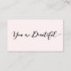 Élégant script de calligraphie signature noire dans les mots "vous êtes beau" sur arrière - plan rose. Carte de rendez-vous parfaite pour les professionnels de la mode et de la beauté, les magasins de mariée et les stylistes personnels. Pour plus de matériel marketing de mise en correspondance, de conception personnalisée ou de demande de logo, veuillez me contacter à maurareed.designs@gmail.com et je répondrai dans les 24 heures. Pour l'expédition, cardstock demande et prix contactez Zazzle directement.