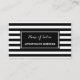 Rappelez aux clients leur prochain rendez-vous coiffeur avec ces cartes de visite de rappel de rendez-vous de salon en noir et blanc à large bande horizontale tendance. Personnalisez en ajoutant le nom de l'esthéticienne certifiée et les informations de rendez-vous à ce motif rayé noir et blanc contemporain. Tout le texte de ce modèle de carte de visite peut être customisé avec votre profession ou entreprise de votre choix.