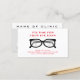 Employez ce carte de visite orienté d'optométrie à double fonction comportant une paire de verres de lecture avec la réflexion d'un diagramme d'oeil dans les verres pour rappeler des patients leur examen de la vue ou rendez-vous prochain. Personnalisez en ajoutant le nom de l'optométriste ou de l'ophtalmologue et de l'information de contact de clinique.
