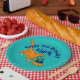 Brillanter Orangenvelociraptor mit 3 Kerzen