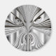 Ominous Augen auf einer Spukmaske in Schwarz und Weiß über einem gerippten Edelstahlhintergrund.
