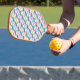 A Bright Pastel Modern Designed Pickleball Paddle Of Pink, Blue, Yellow And Gray Geometric Designs