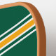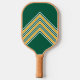 Stand out on court with a custom pickleball paddle! Personalize the template with your monogrammed initials and text — ideal for a player's name, team name, location, or a fun saying. This sports jersey style design features a retro block font, trendy script, and matching chevron colors on the reverse side. Perfect for all ages, including kids, teenagers, and adults. Custom paddles make a lovely unique gift for friends, family, and Pickleball enthusiasts! Colors: dark green, yellow gold and white.