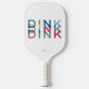 Ce DINK personnalisé nom pickleball paddle avec tête tournante sur le terrain. Un design moderne avec le mot "DINK" dans des tons vifs de rose, bleu, jaune et vert. Personnalisez la pagaie avec les initiales ou le nom de votre choix. Faites un cadeau merveilleux pour le joueur de pickleball dans votre vie ou vous offrez vous-même. Une partie d'une collection de Parcel Studios.