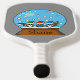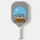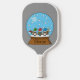 Illustration d'un mignon globe de neige avec trois génomes de hibou portant un chapeau de santa coloré dans un paysage enneigé avec un pin. L'un des génomes de hibou tient une hache. Ce dessin animé de snowdome ou de waterglobe Christmas est une idée cadeau pour les amateurs d'oiseaux, de Noël et de vacances d'hiver. Personnalisez ou customisez cette pagaie de pickleball en ajoutant votre nom ou votre texte.