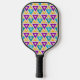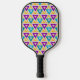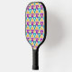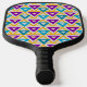 Cette pagaie à pickleball a une conception Bauhaus de triangles répétés en or, turquoise, turquoise, violet et or clair. Si vous aimez le design mais préférez différentes couleurs, envoyez-moi un message.