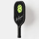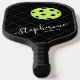 Raquette De Pickleball Noir Blanc Jaune Élégant Script Personnalisé