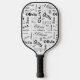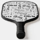 A personalized Pickleball paddle, specially crafted to feature the name "Olivia" This remarkable gift choice showcases a background pattern with the letter "O," set against a dynamic palette of black, white, and grey.