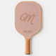 Teracotta rose vif bouillie, pagaie à pickleball couleur cuivre tan avec un script d'écriture mignon un monogramme initial, et optionnel nom personnalisé et numéro de téléphone dans un design simple, subtil, classique-moderne tendance avec une ambiance désert boho.