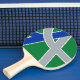 Ping Pong Paddle avec un design avec le drapeau d'Albany, Oregon. Un drapeau vert, gris et bleu