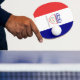 Ping pong paddle avec drapeau de la ville de Cleveland, Ohio; drapeau avec trois bandes verticales de rouge, blanc et bleu avec sceau de la ville dans le centre