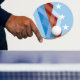 Ping Pong Paddle avec un design avec le drapeau de Peoria, Arizona. Un drapeau bleu, marron et blanc avec des sommets et trois étoiles