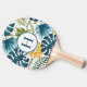 Raquette De Ping Pong Monogramme bleu feuille d'ananas à palme tropicale