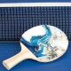 Raquette De Ping Pong Monogramme en marbre bleu blanc Abstrait